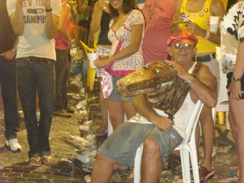 Quietschvergnügter Opa, der es mit seinem Kroko auf die hübschen Senhoritas abgesehen hat...