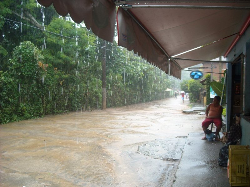 Hauptstraße von Abraao im Regen