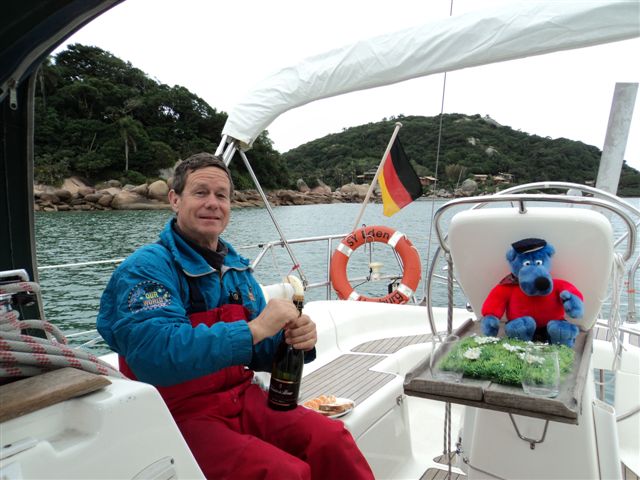 Sektfrühstück! Wir ahben Ilha Santa Catharina erreicht
