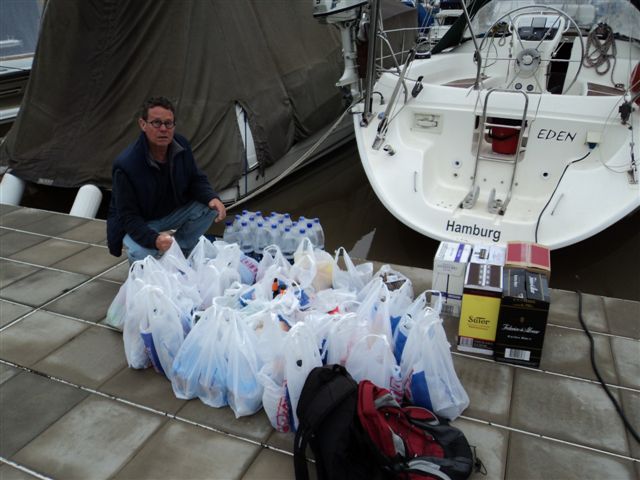 Beim Bunkern: Obst Gemüse Brot Nudeln und lekeren Wein!