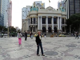 Stadtbummel unter grauem Himmel. Vor dem teatro muncipal