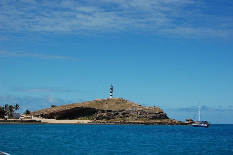 Mitten im Reich der Wale - der Archipel Abrolhos - Blick von unserem Ankerplatz auf den Leuchtturm