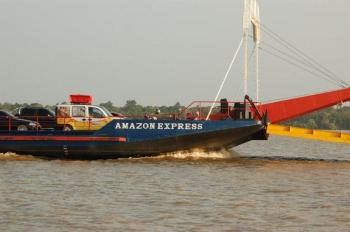 Fähre fährt flussaufwärts, wir nun wieder flussabwärts