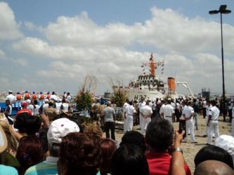 Schiffsprozession mit der Heiligenstatue - alle warten auf die Ankunft