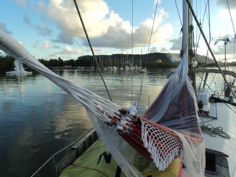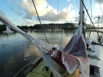 Hängemattenplatz vor der Marina Cayenne. Unter Deck ist es wirklich kaum auszuhalten