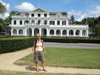 Vor dem "Weißen Haus" von Paramaribo. Dort residiert der Präsident von Surinam.