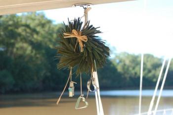 Flussafwärts ins Landesinnere - und wir finden ehemalige Plantagen, später nur noch undurchdringliche Natur. Wir ankern vor einem Papageienwald und dann im Nirgendwo. Grüne Hölle pur!