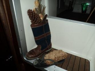 Nikolaus-Überraschung: Claudia hatte ihren Stiefel geputzt, Friedrich seine Havainas... Claudia bekam eine CD mit surinamiscer Musik, Friedrich ein selbstgebackenes Sauerteigvollkornschrotbrot ...
