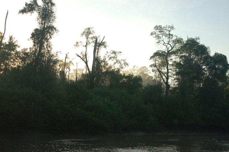 Flussafwärts ins Landesinnere - und wir finden ehemalige Plantagen, später nur noch undurchdringliche Natur. Wir ankern vor einem Papageienwald und dann im Nirgendwo. Grüne Hölle pur!