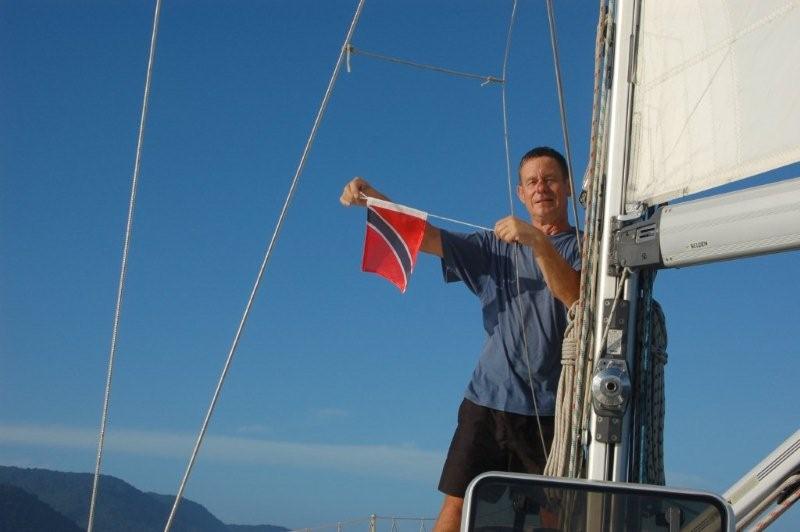 Seemännische Tradition: Der Käpt´n beim Hissen der Gastlandflagge von T&T - Trinidad und Tobago