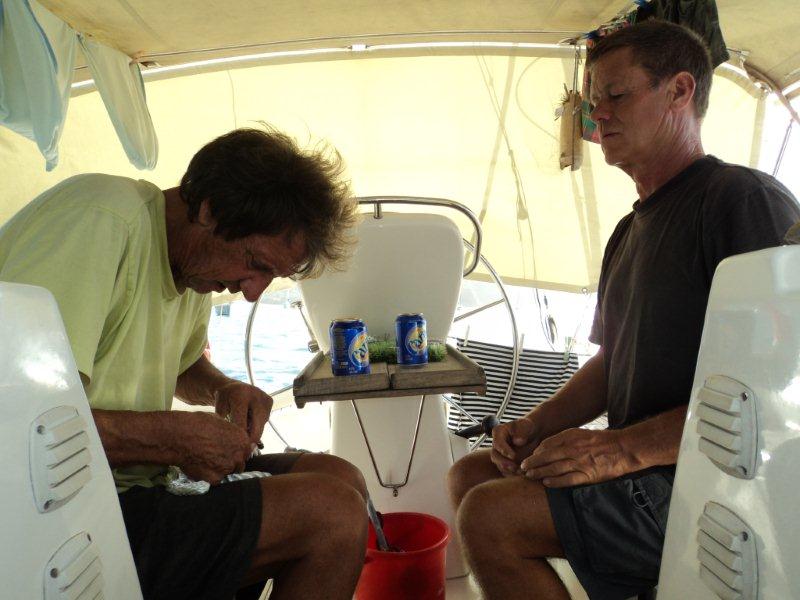 Käpt´ns bei der Arbeit - Friedrich und Uli beim Spleißen.