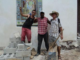 Kirchenrestaurierung - stolze cubanische Bauarbeiter mit deutschem Architekten
