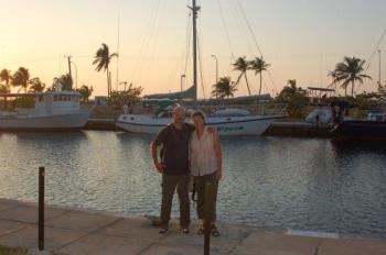 Toralf und Gundula vor ihrer WIGWAM - schön, mal thüringer Segler zu treffen!