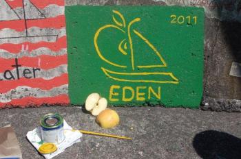 Horta ist der Treffpunkt der Seglerwelt schlechthin - wer die Welt umrundet oder im Atlantik segelt, kommt irgendwann garantiert hier vorbei. wir lassen uns einfach von der Atmosphäre dieses Ortes anstecken, versäumen es auch nicht, im berühmten Café Sport einzukehren und tun was alle Segler machen:: Wir malen unser Logo als Glücksbringer an die kullerbunte Hafenmole!