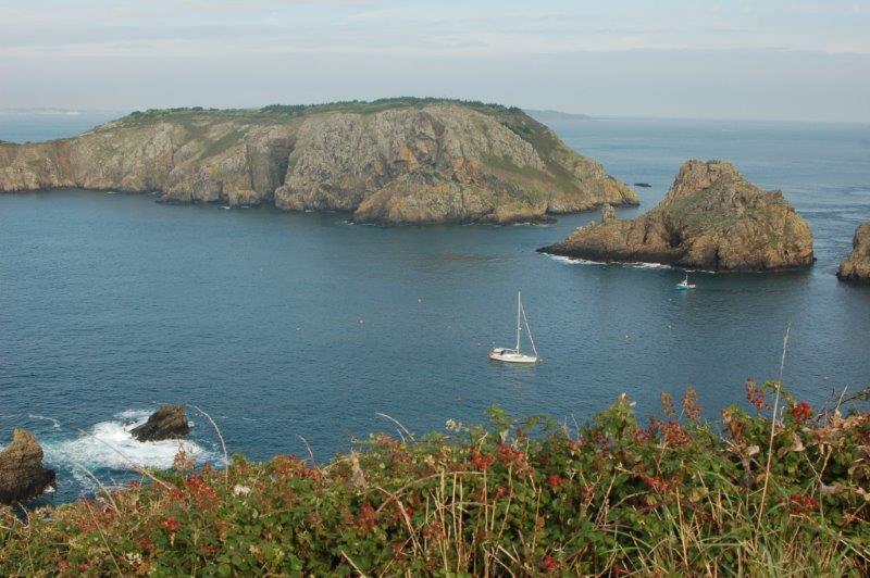 Wir haben unser nächstes Ziel (ohne Eisberge) erreicht: Die kleine Kanal-Insel Sark. EDEN in einer geschützen Bucht vor Anker.