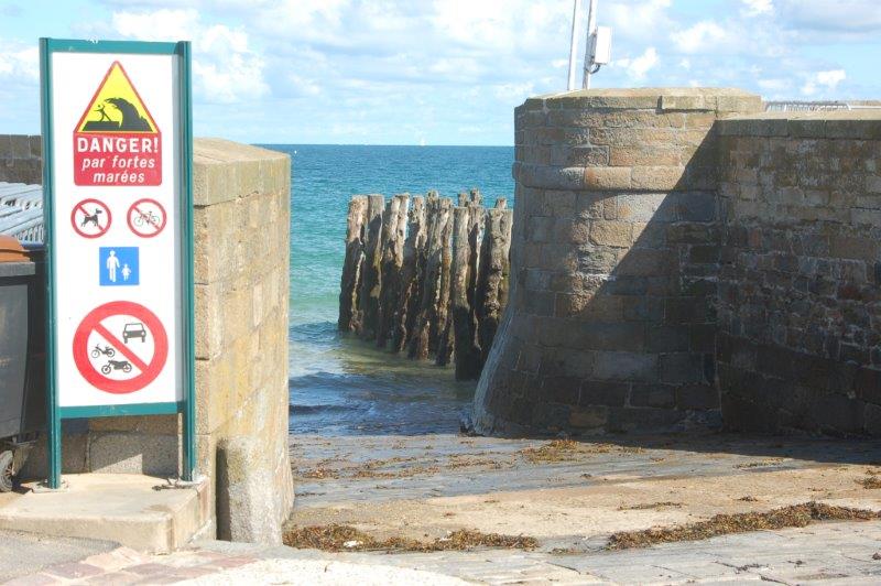 Kaimauer mit Fußweg ins Meer - bei Ebbe laufen wir von hier zu den vorgelagerten Inseln...