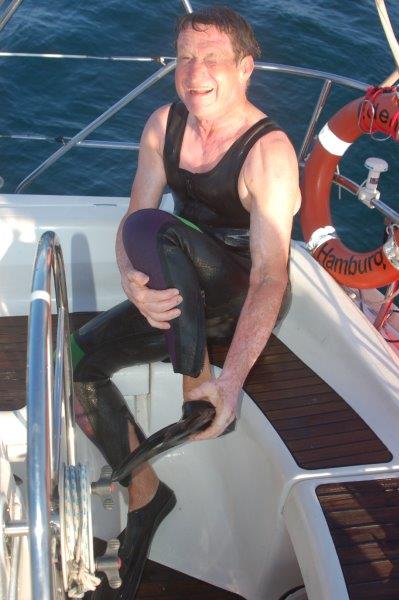 Nach dem Tauchgang - eine Mooringleine hatte sich um unser Ruder gewickelt... heldenhaft hat Käpt´n uns befreit...