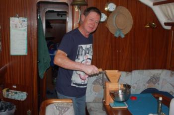 ... statt Drehen an der Winsch - Kornmalen für einen leckeren Apfelkuchen... und draußen stürmt und regnet es!