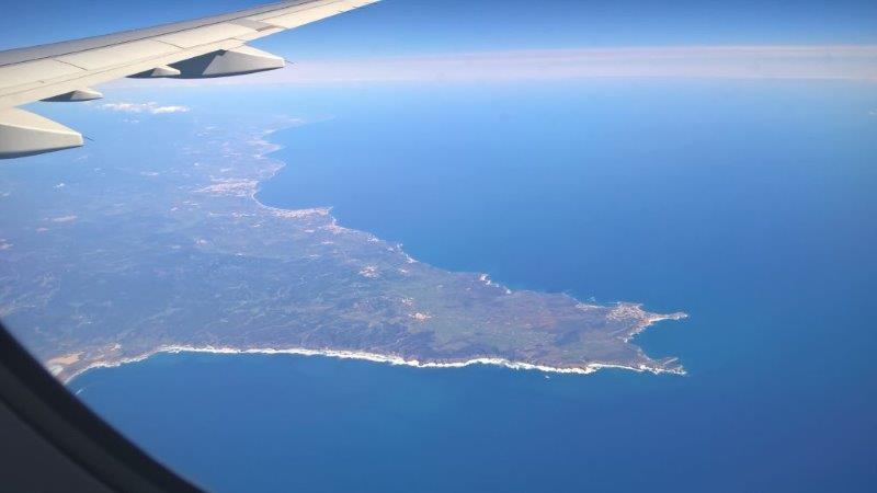... Heimflug für die Crew (Genial! Hier sind wir entlang gesegelt! Portugiesische Küste mit Cabo Sao Vicente und Algarve)