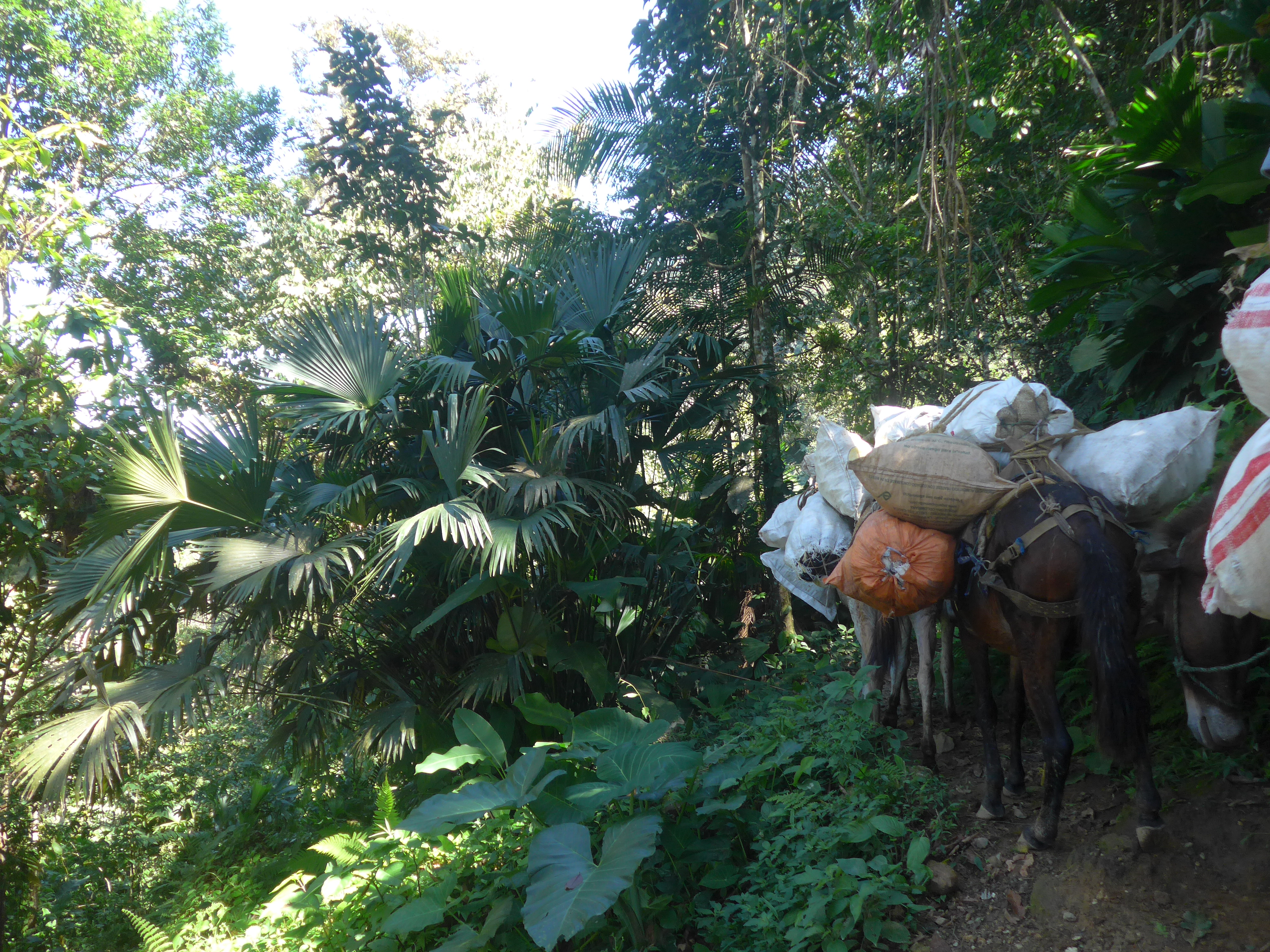 Maultierkaravane beim Überholen. Alle Güter für Einwohner und Camps werden so in die Berge gebracht.
