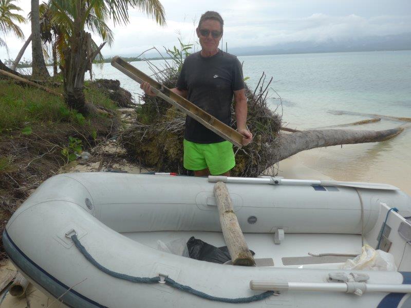 ... stolz auf neue Dachrinnen zum Regenwasserauffangen und die neue Sitzbank im dinghi!!!