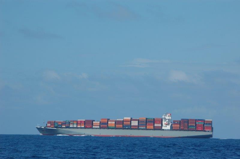 Wir kreuzen den Panama-Weg: Schiffe in alle Richtungen! Das hier steuert den Kanal an, um in den Pazifik zu wechseln!