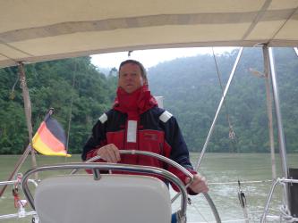 Nun gehts bei kühlem regnerischen Wetter flussaufwärts...