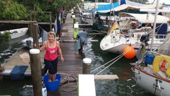 In der Marina Punta Bonita: Wir entsalzen unser Boot, alles wird gewaschen, getrocknet, geputzt und repariert.