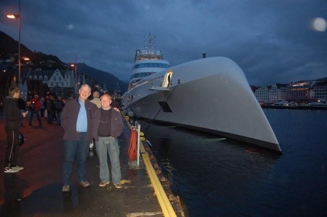 Zwei Bergenser vor der "A" - aber sie gestehen, dass ihnen das alte Segelschiff doch besser gefällt!