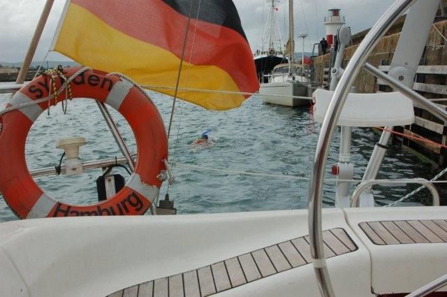 Festgemacht im Hafen Wicklow - und irgendwas schnauft am Boot...