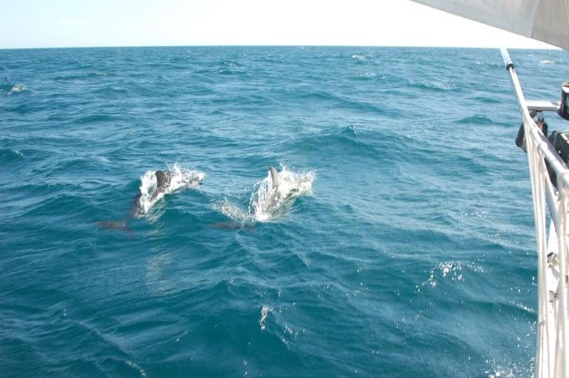 Tobende Delfine - offensichtlich lieben sie unser Schiffchen und bleiben fast eine Stunde bei uns