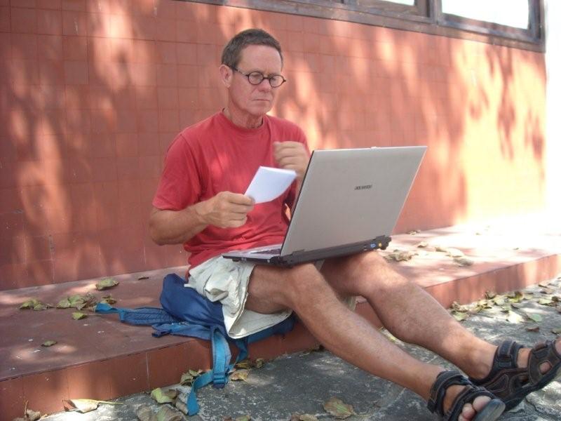...ws nimmt man nicht alles für eine Mail in der Heimat in Kauf - Arbeitsplatz am Küchenhintereingang mitten im Mövenschiet...