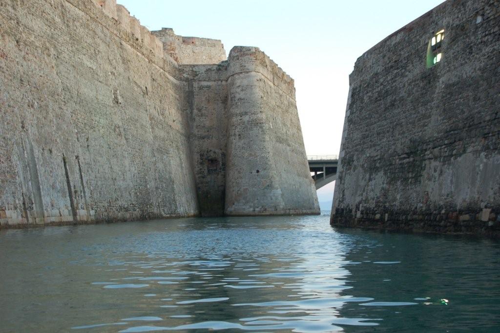 Per Schlauchboot fahren wir durch einen Festungskanal vom Atlantik ins Mittelmeer