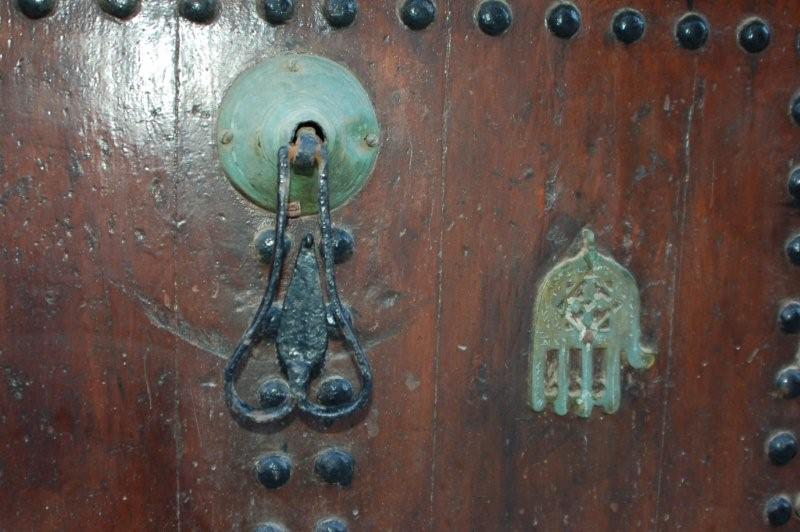 Türklopfer und daneben die Hand der Fatima, die Unkgück abhalten soll