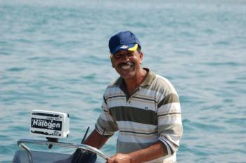 Fröhlicher Lotse - mit eineem "Bon voyage" verabschiedet er uns herzlich.