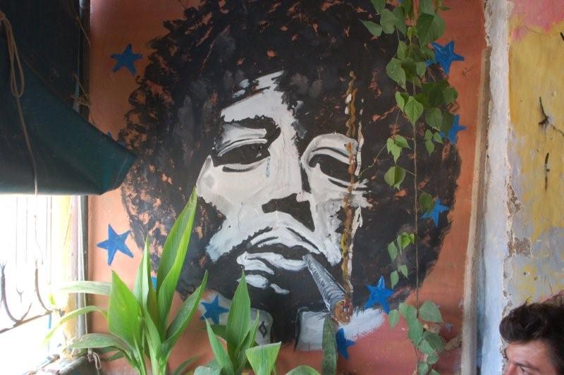Jimmi Hendrix-Portrait im Restaurant