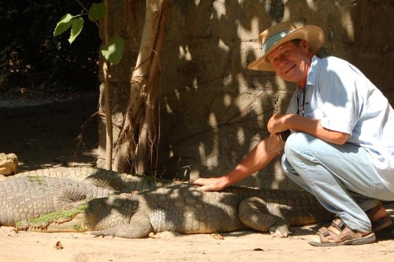 Ganz mutig: Friedrich streichelt ein Kroko....