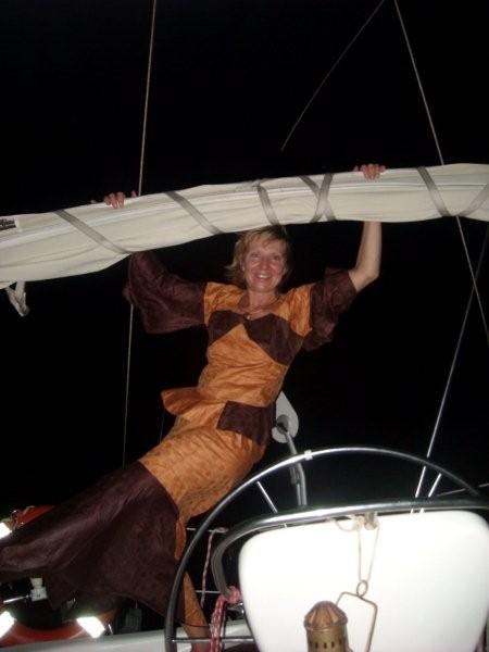 Claudia in ihrem neuen gambianischen Kleid - ein Geschenk von Amie