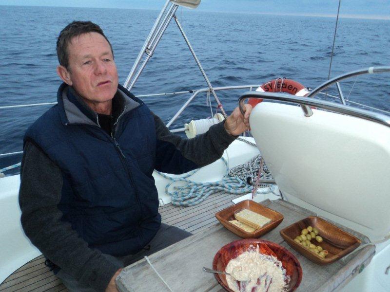 Unser letzter Abend auf dem Atlantik - stolzer Käpt´n...