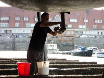 Unterwassergarten-Pflege: Der Käpt´n macht sein Schiffchen nordsee-chic.